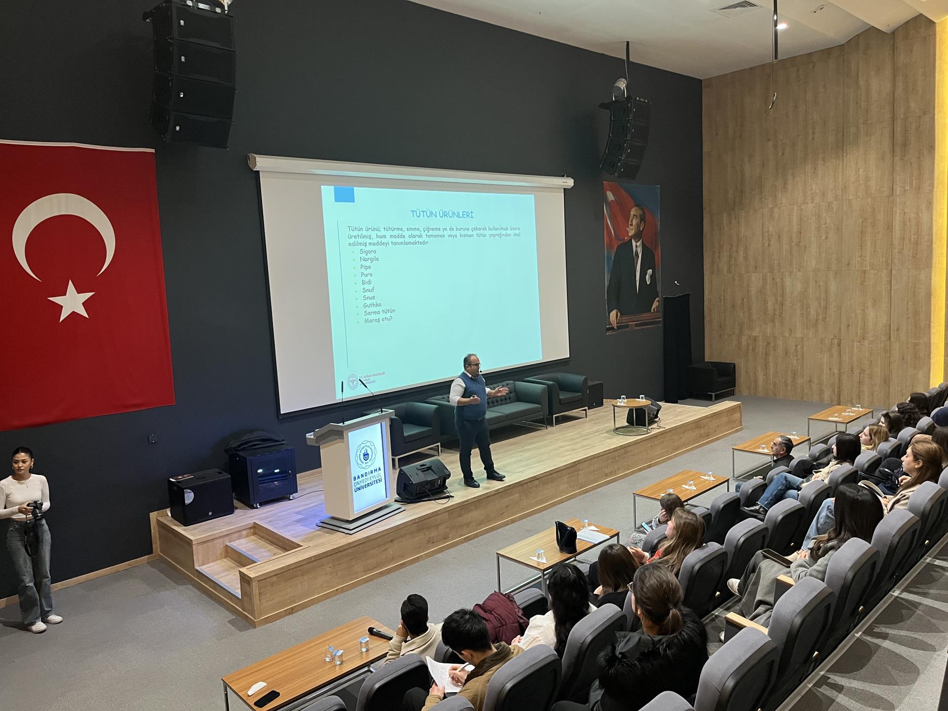 Üniversitemizde Bandırma İlçe Sağlık Müdürlüğü görevlileri marifeti ile Tütün Bağımlılığı ve Tedavisi Eğitimi düzenlendi.